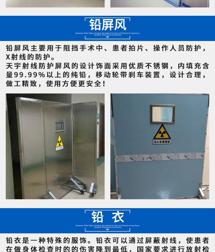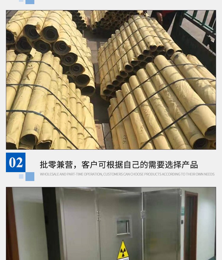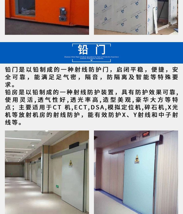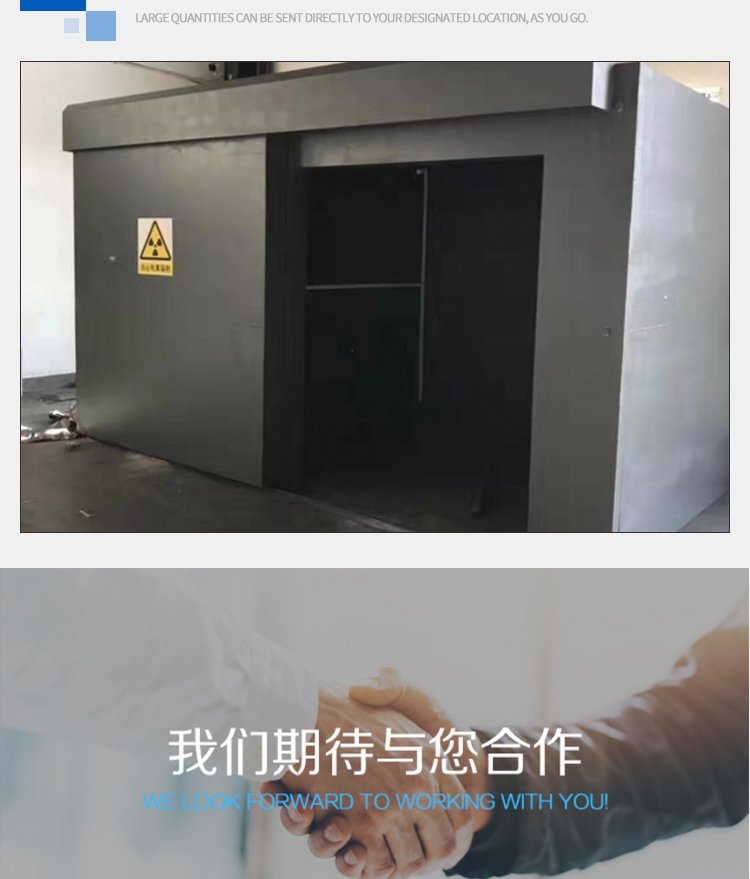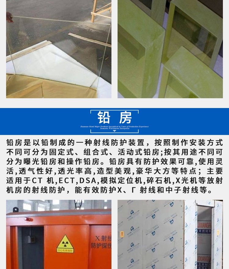 无锡市凯瑞特金属材料制造有限公司专业生产的铅玻璃具有含铅量高、防护能力强、耐氧化、无毒、无杂质、无气泡的优点。 透光率≥95%.其中铅 公司十年专注各类防辐射材料品质生产,包检测过关。玻璃中铅含量≥26%钡含量≥15%丰富的铅钡含量使铅玻璃密度高达4·42cm/g.高于国家标准!从而使铅玻璃有更好的防护效果!公司铅玻璃专业配备防护液可有效保护铅玻璃提高玻璃考氧化性!铅玻璃的安装必须配备专业的铅防护框以保证射线不外泄和铅玻璃的安全。 铅玻璃框和铅玻璃防护两相当,防护框方式采用不锈钢内部铺贴医用铅板.铅玻璃常用规格为1200*800或800*600两种规格。公司专业设计生产TF-F系列射线防护门分为推拉式、平开式两种。这两种防护门依据J650国家标准制作。铅当量分为从2mmpb-30mmpb不等!(铅当量高低根据机器不同由我公司人员计算得出。防护门尺寸根据门洞大小定制)电动防护门特设远程遥控系统(选用远程遥控器可远程遥控开启)、红外防撞系统(门口有人时防护门无法关闭确保人员安全.)门机联锁系统(防护门开启式机器无法开机确保人员安全)辐射防护效果符合GB18871-2002《电离辐射于辐射源安全卫生基本标准》防护门外饰面一般采用不锈钢外饰或铝塑板外观漂亮大方并加贴防辐射标志,提醒工作人员注意安全。一般放射机房设计两个防护门。